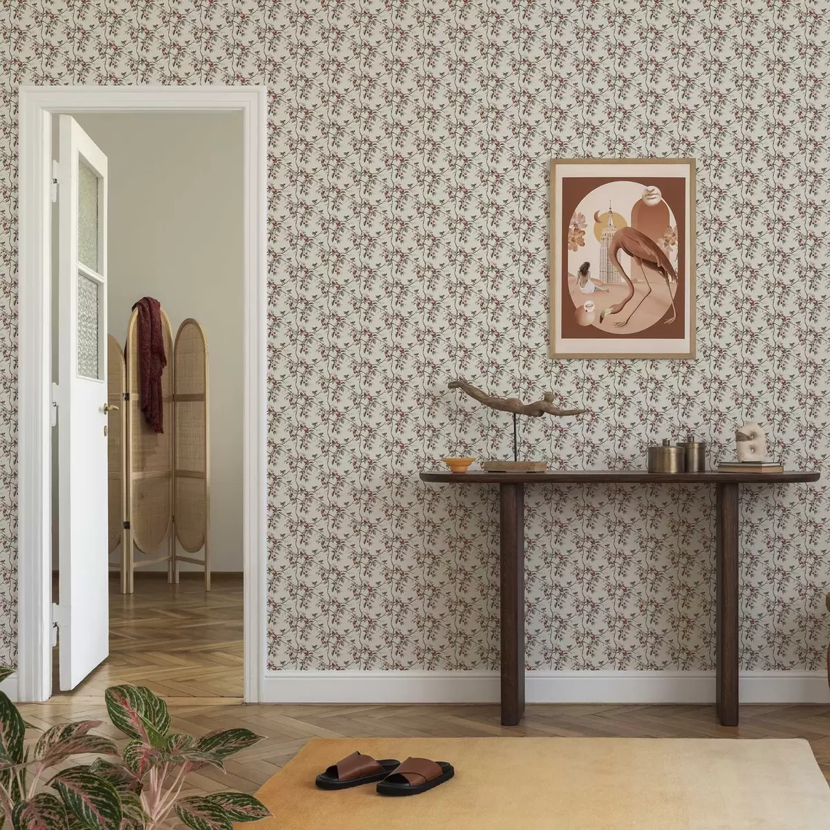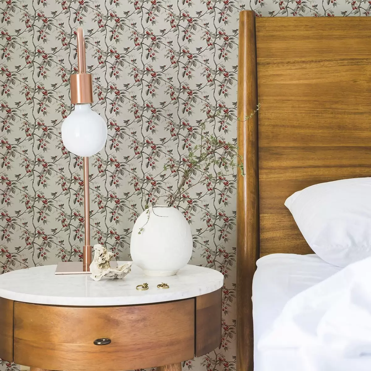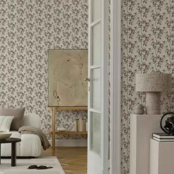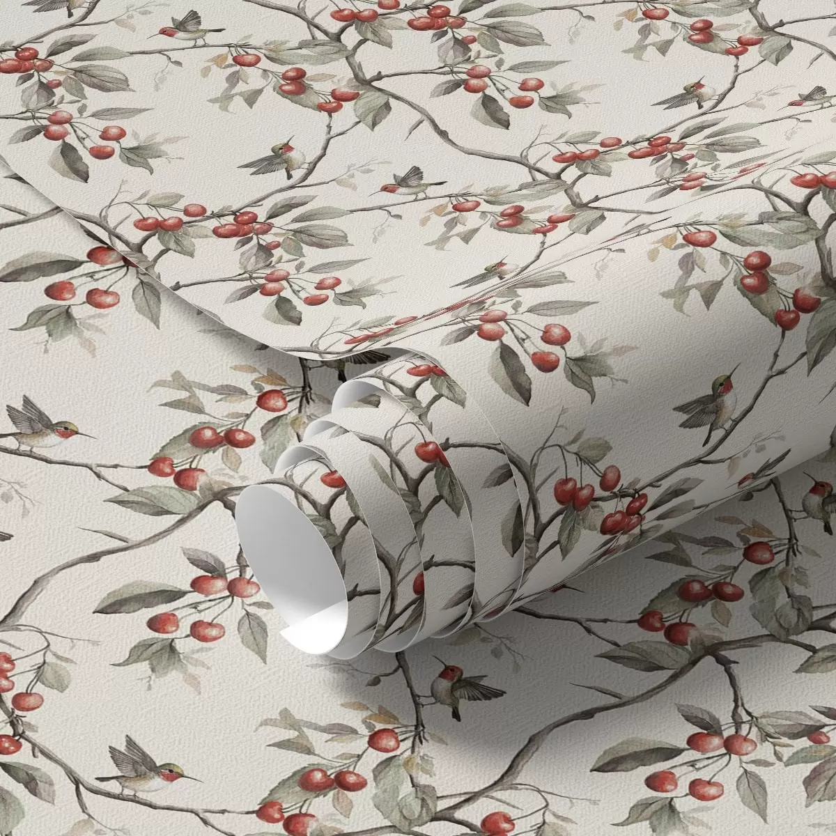 Tapet Păsări printre ramuri de cireș cu fructe de pădure roșii Nr. a00206