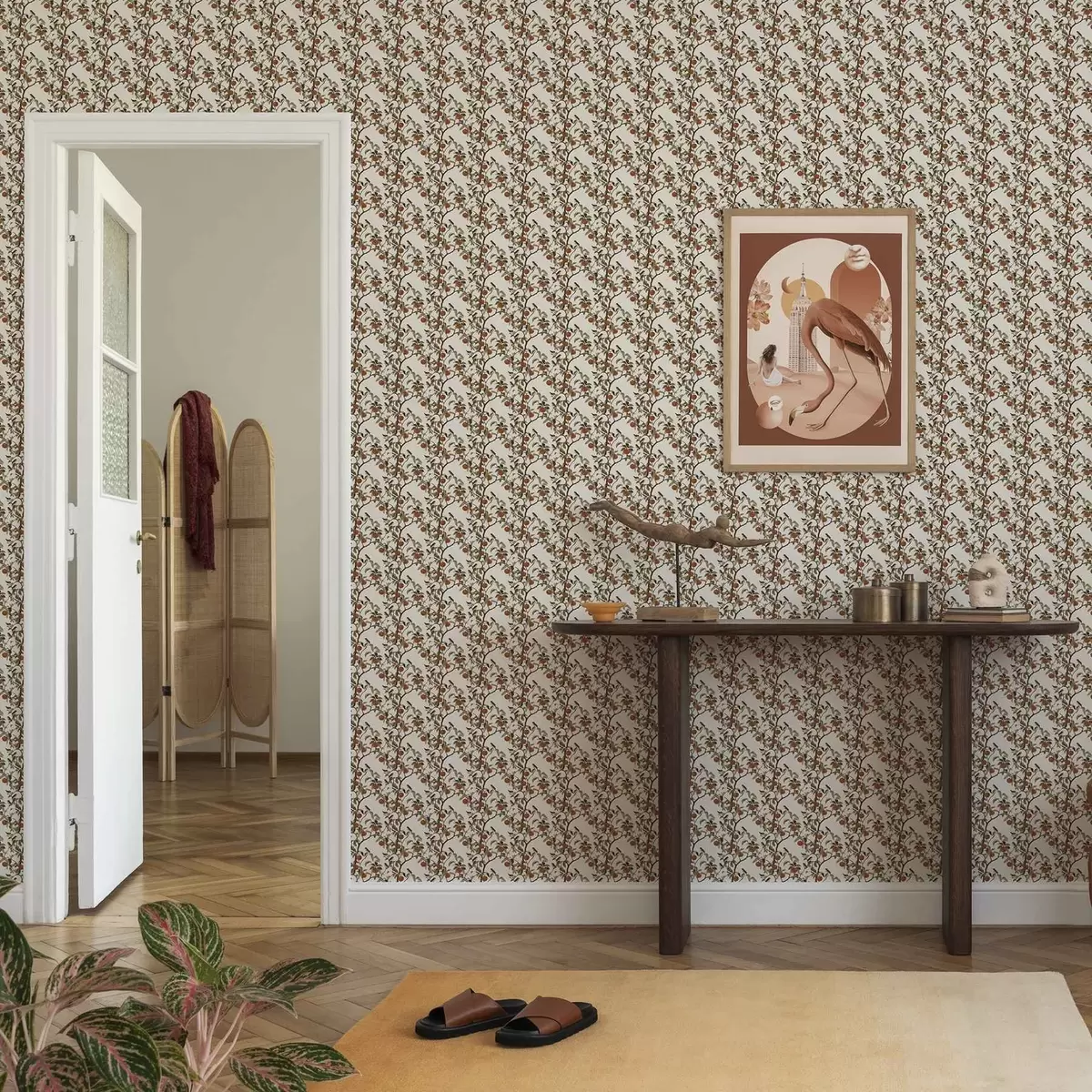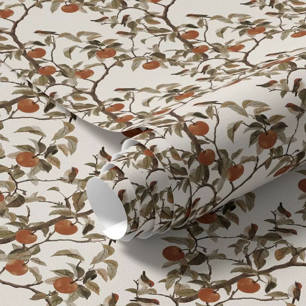 Tapet Păsări și portocale pe ramuri, botanică de epocă Nr. a00208