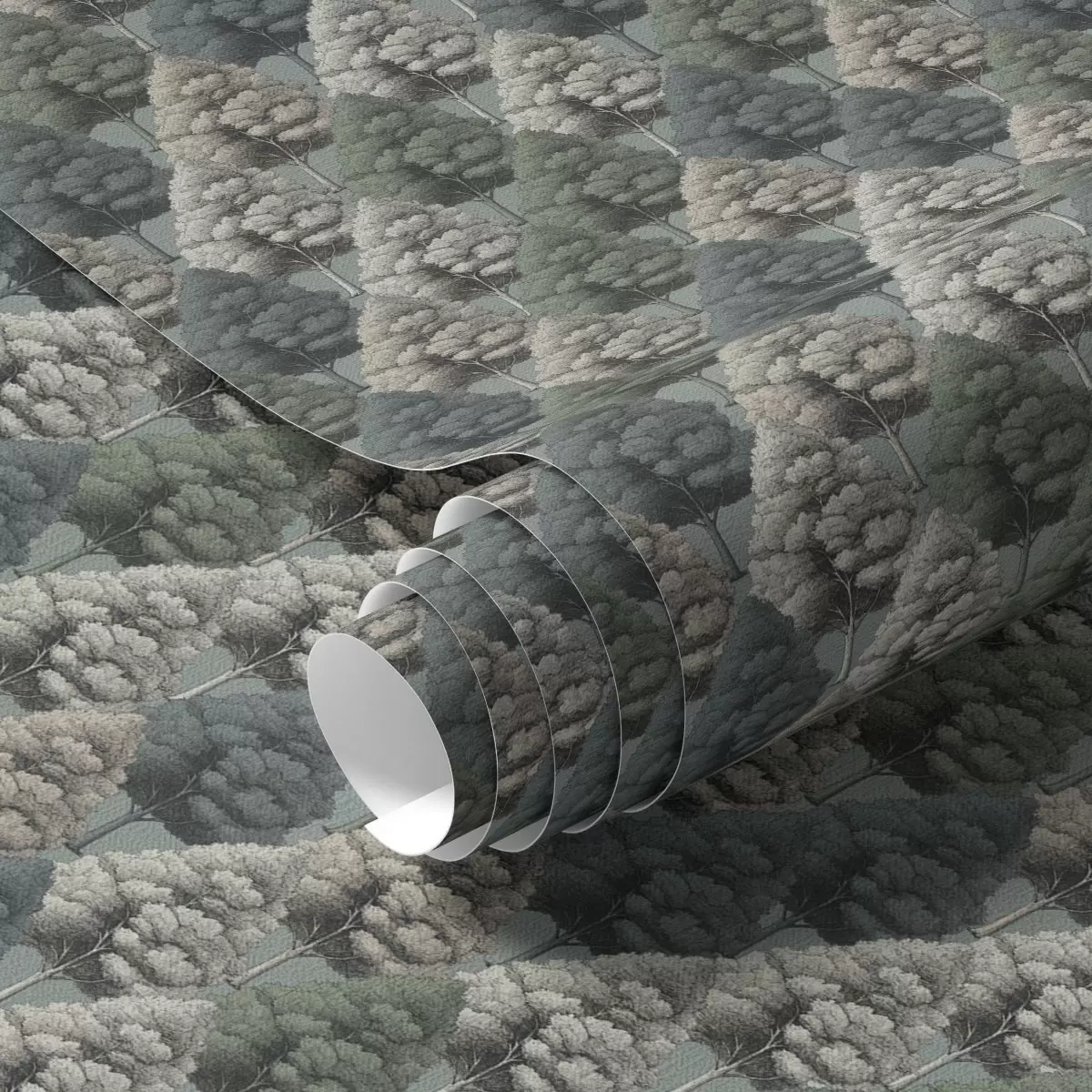 Tapet Geometric model de pădure cu copaci în culori verzi Nr. a00209