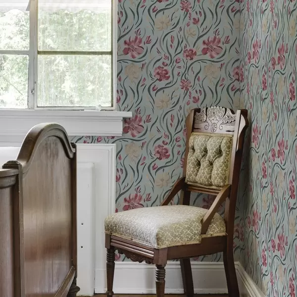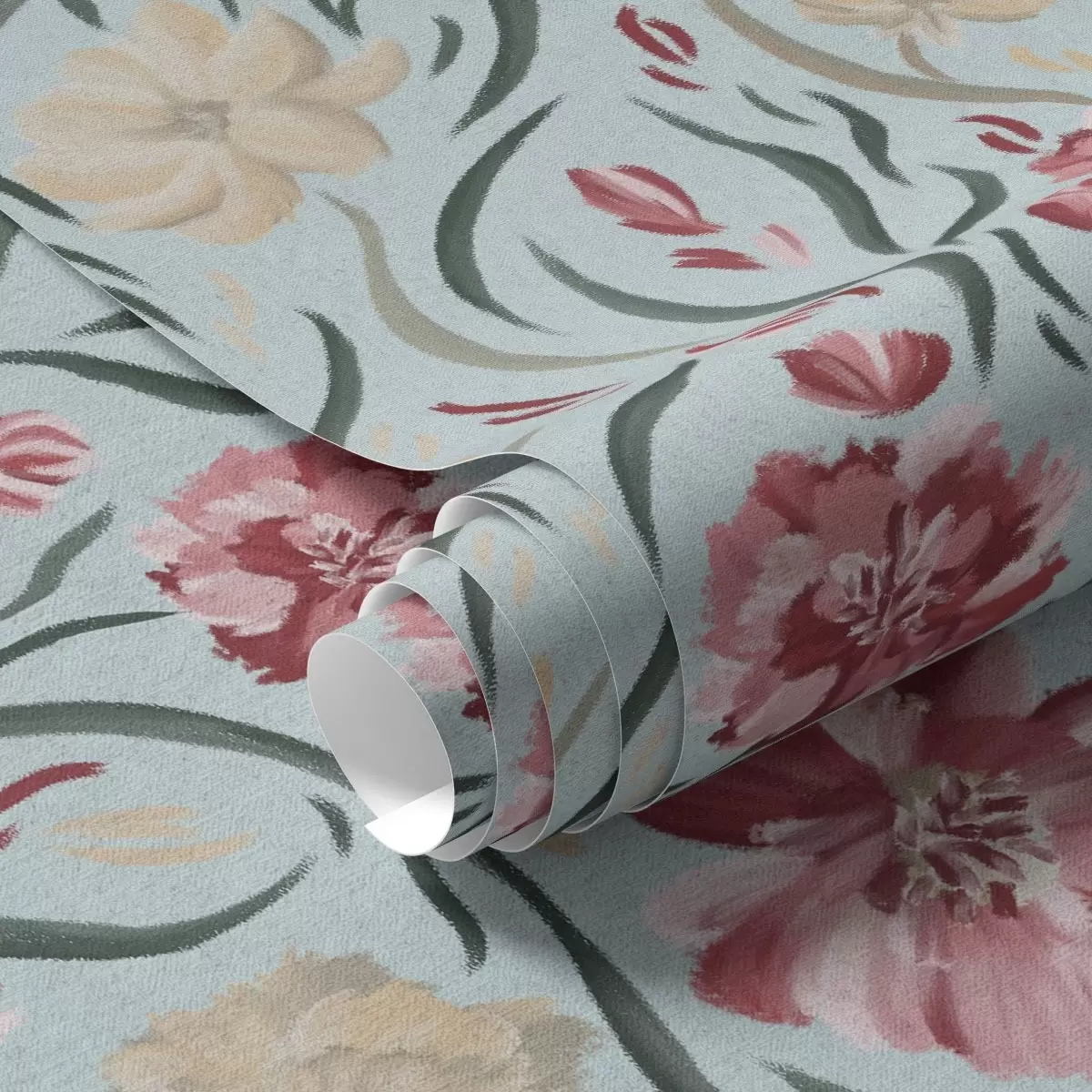 Tapet Flori acuarelă pe un fundal albastru, model roșu și bej Nr. a00216