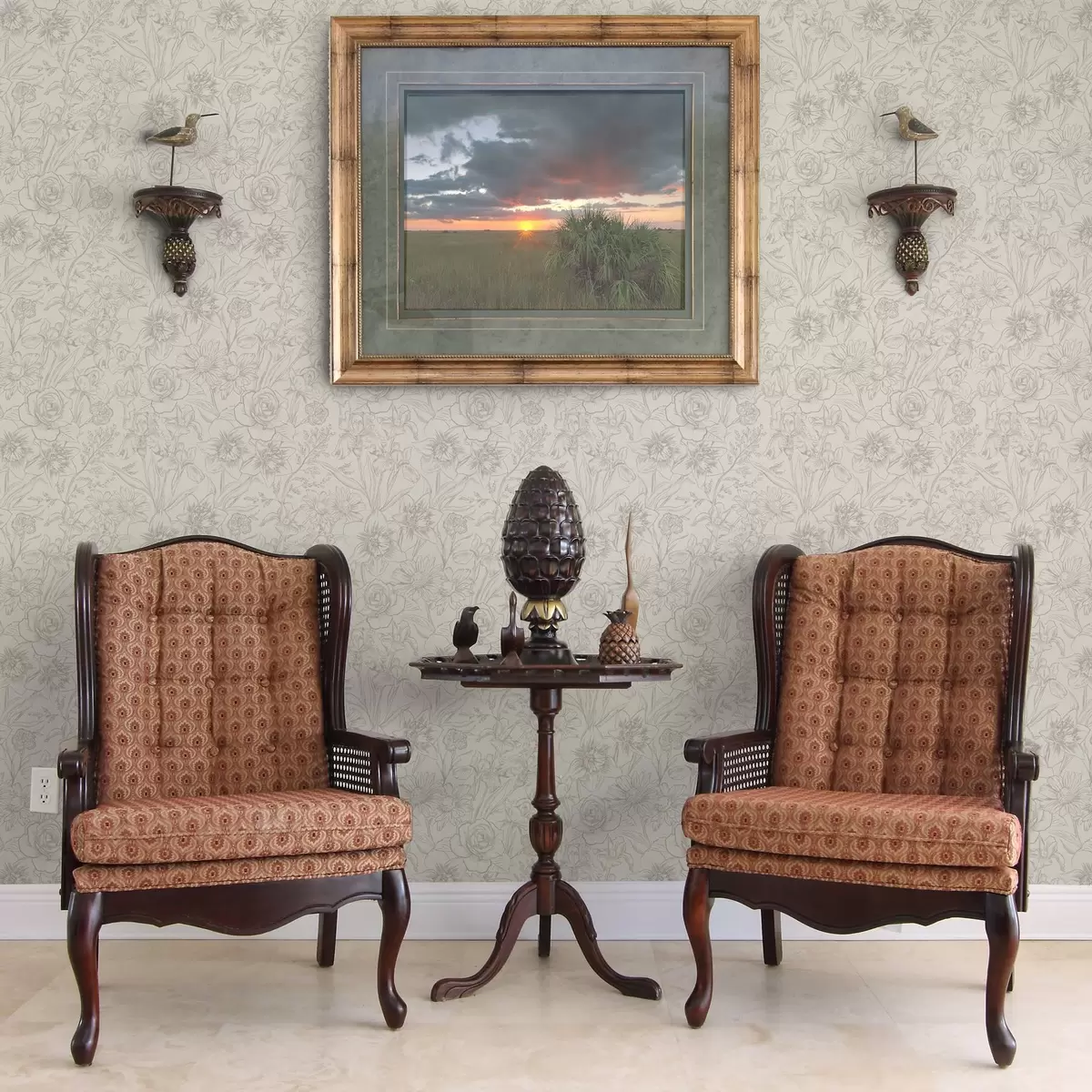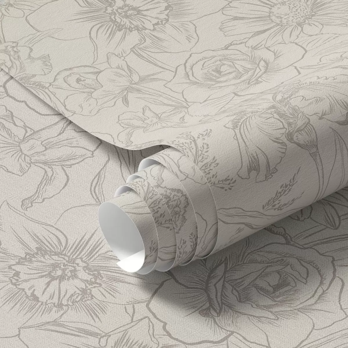 Tapet Contour flori pe un fundal crem, model floral delicat Nr. a00218