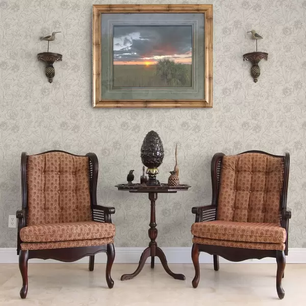 Tapet Contour flori pe un fundal crem, model floral delicat Nr. a00218