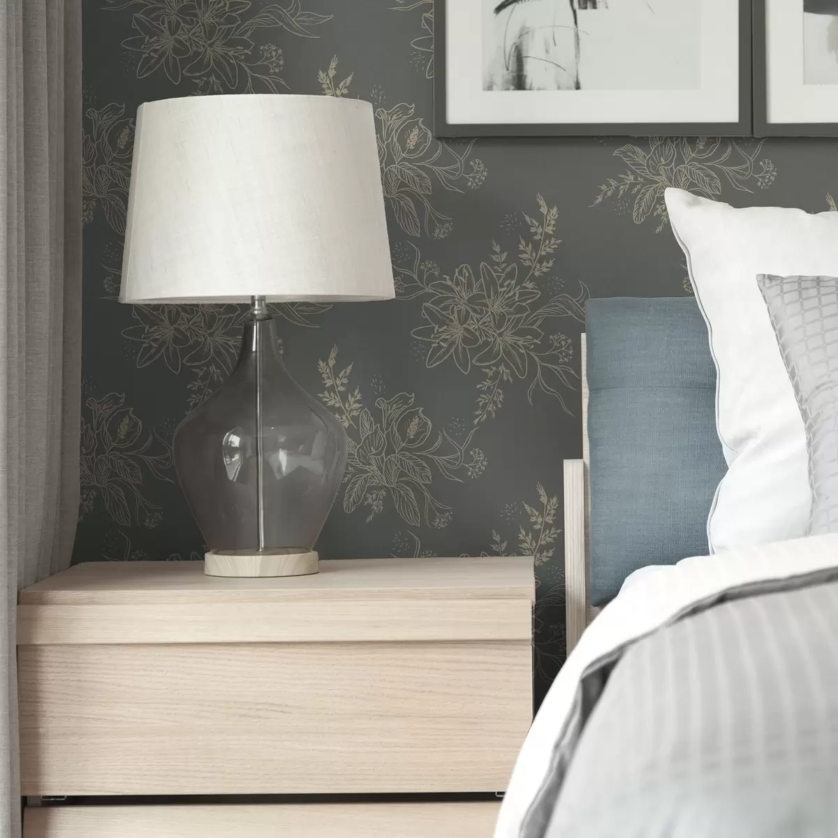 Tapet Flori de contur pe fundal albastru-cenușiu, model botanic elegant Nr. a00226