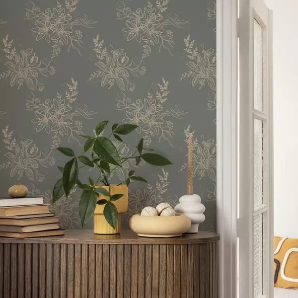 Tapet Flori de contur pe fundal albastru-cenușiu, model botanic elegant Nr. a00226
