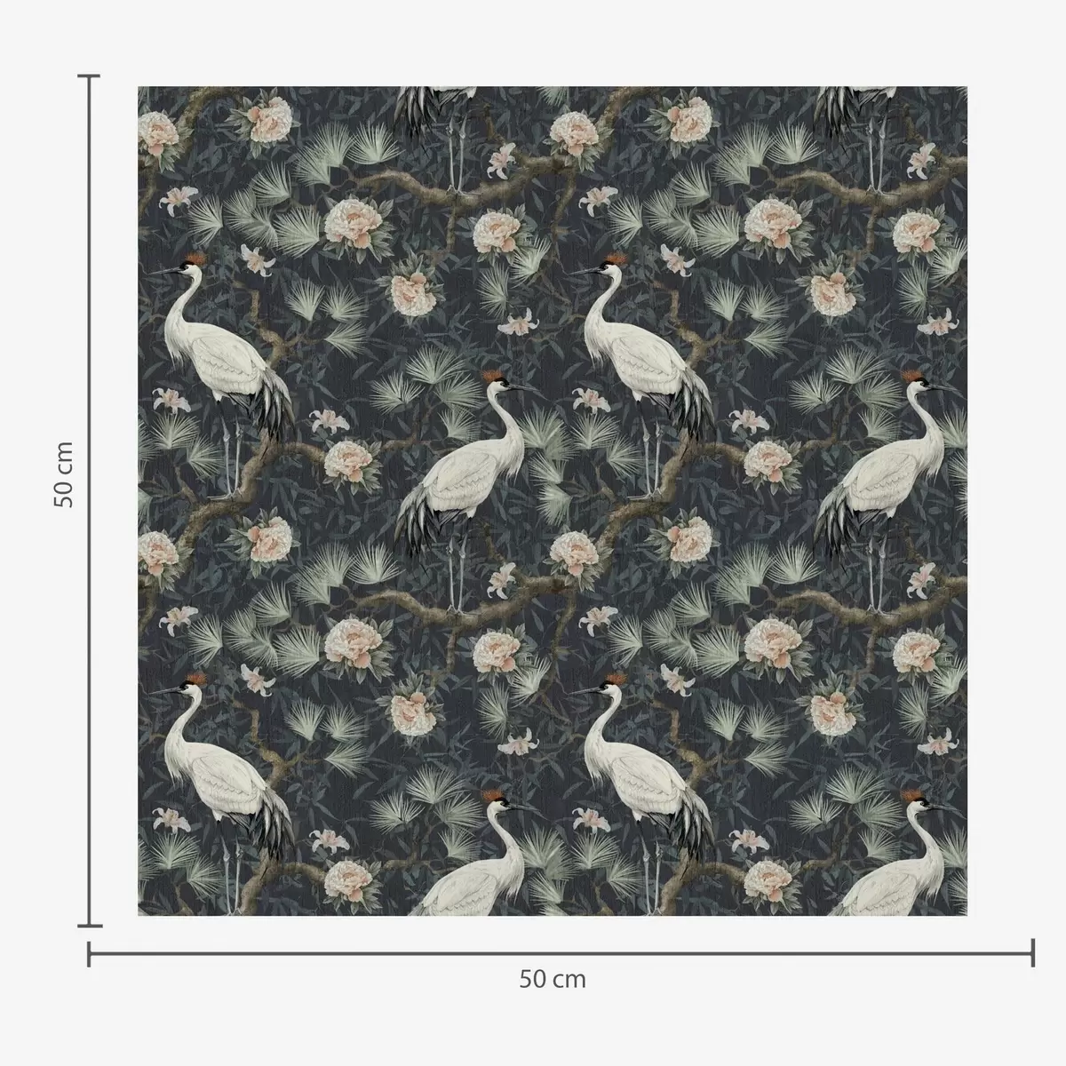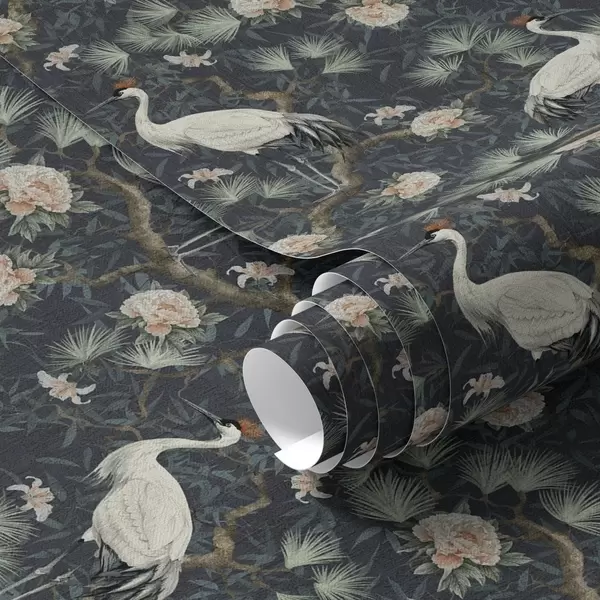 Tapet Cranes printre pini și bujori pe un fundal întunecat Nr. a00241