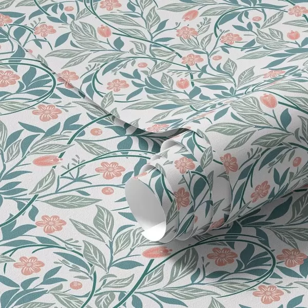Tapet Model proaspăt cu flori și frunze de coral Nr. a00247