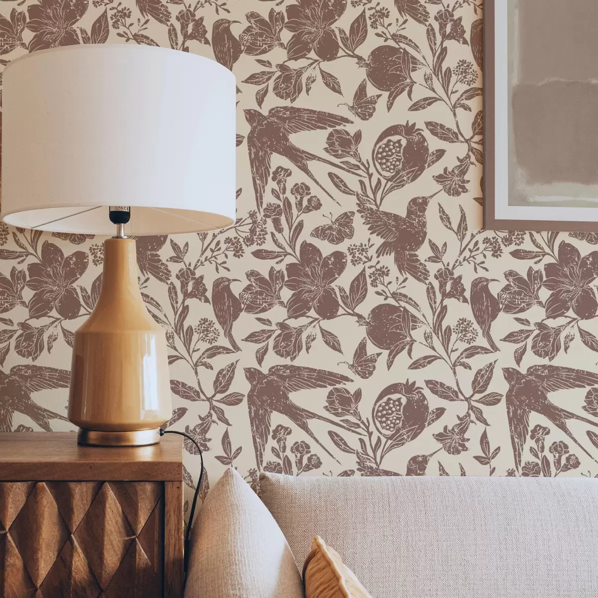 Tapet Păsări, rodii și flori în stil vintage Nr. a00263