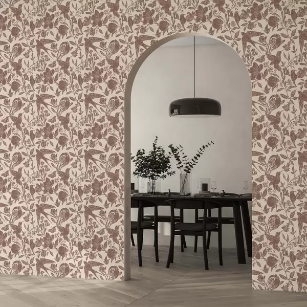 Tapet Păsări, rodii și flori în stil vintage Nr. a00263