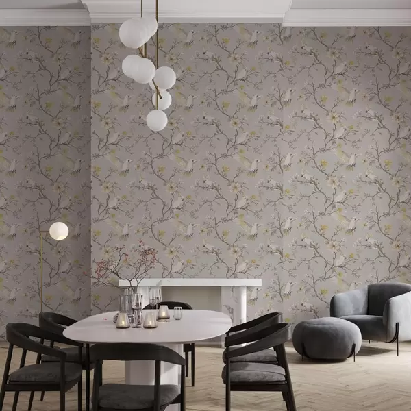 Tapet Papagali și flori galbene pe fundal luminos Nr. a00270