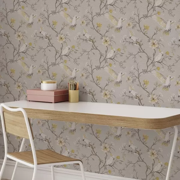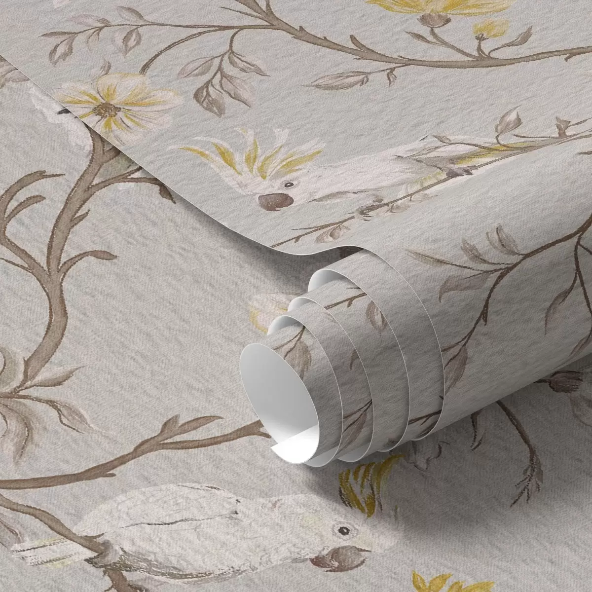 Tapet Papagali și flori galbene pe fundal luminos Nr. a00270