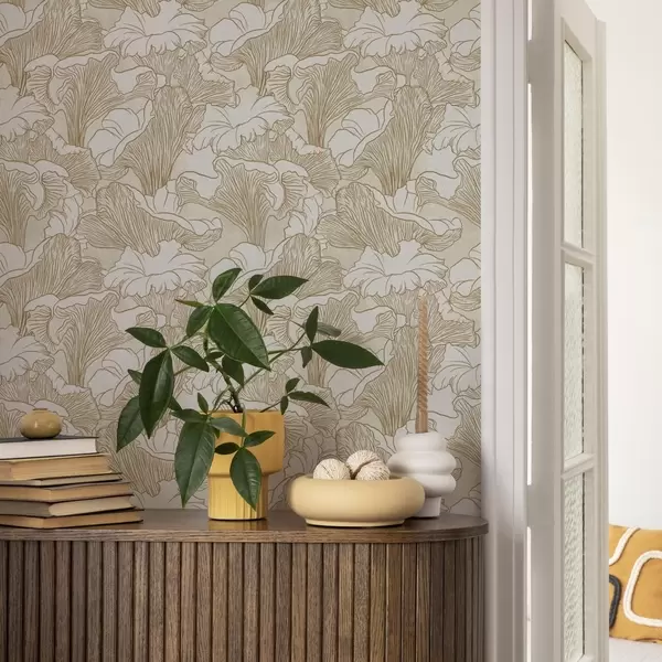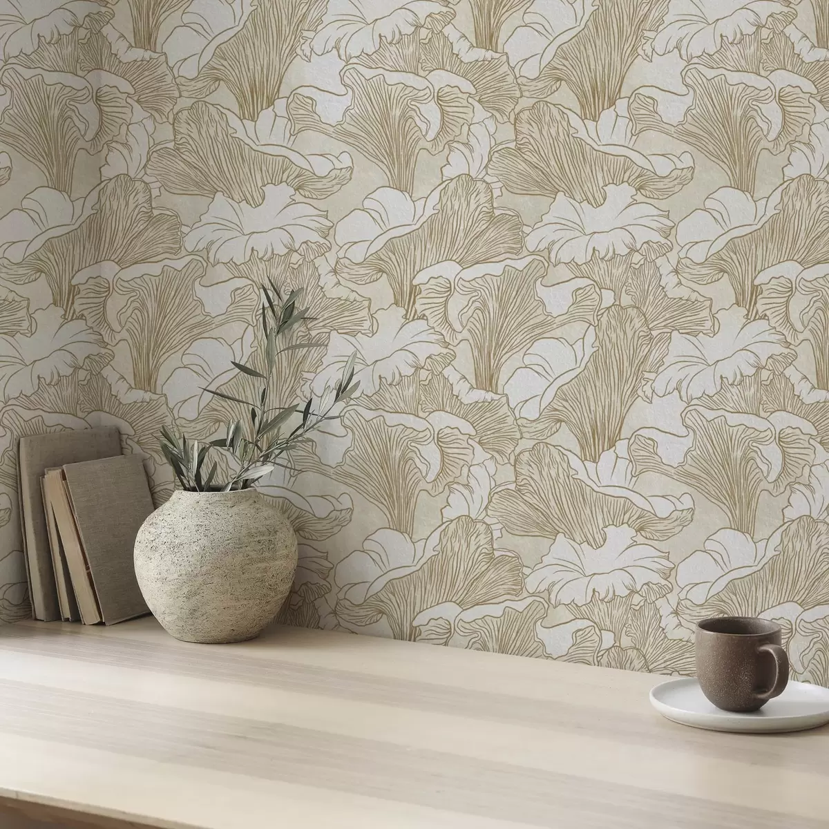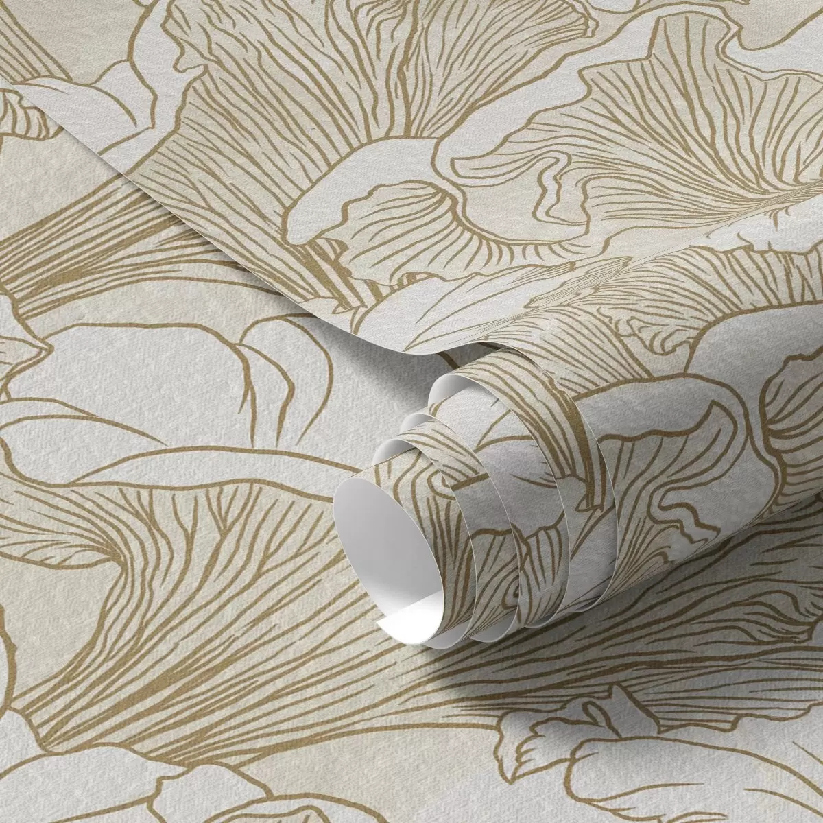 Tapet Ciuperci Chanterelle, desen de linie pe fundal crem Nr. a00275