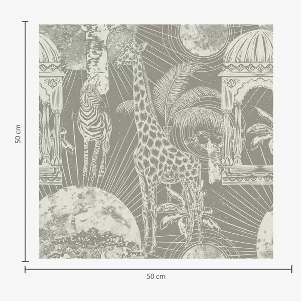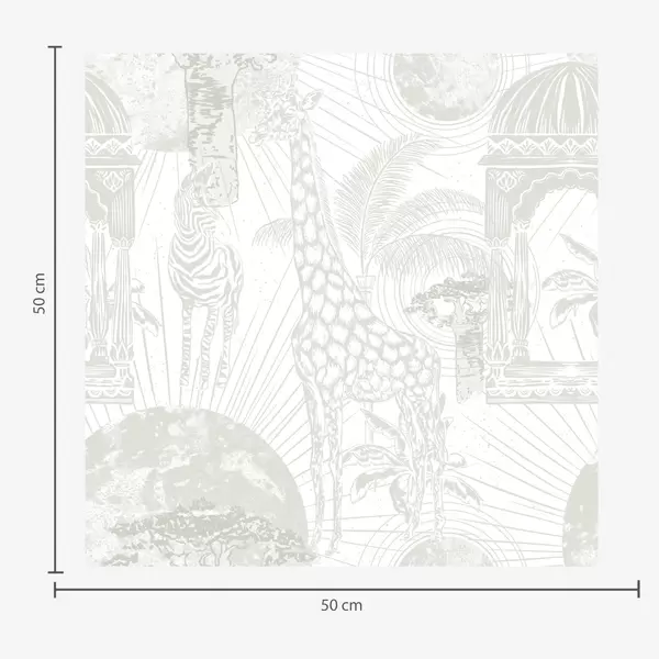 Tapet Ilustrație grafică cu girafă, zebră și palmieri Nr. a00276v1
