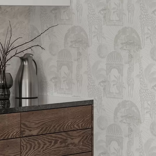 Tapet Ilustrație grafică cu girafă, zebră și palmieri Nr. a00276v1