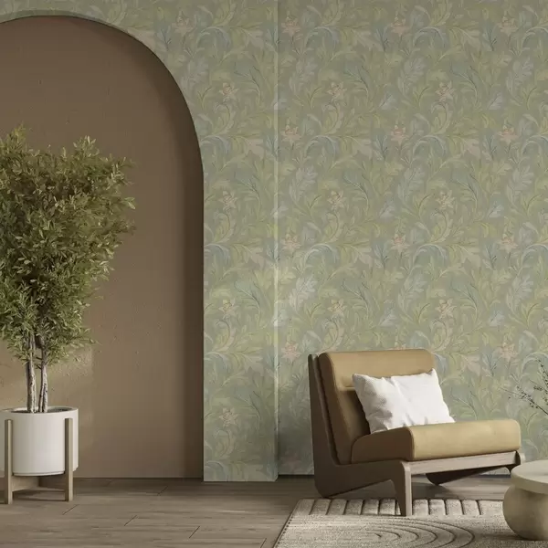 Tapet Frunze de epocă pe fundal verde, culori pastelate Nr. a00277