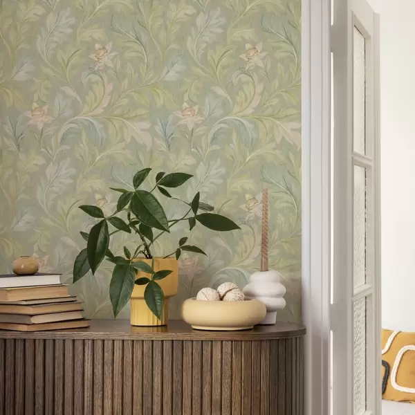 Tapet Frunze de epocă pe fundal verde, culori pastelate Nr. a00277