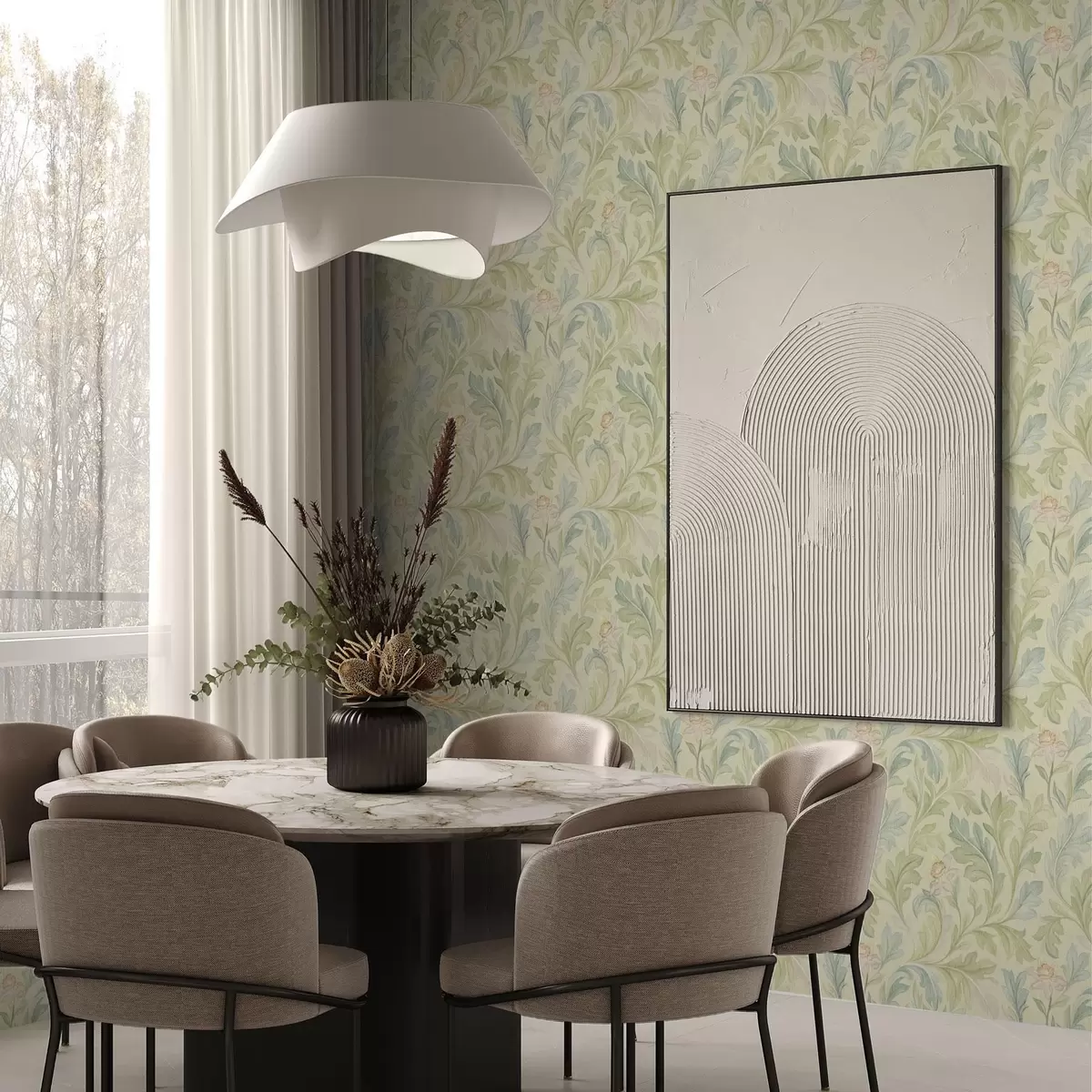 Wallpaper Frunze de epocă pe fundal gălbui, culori moi a00277v1