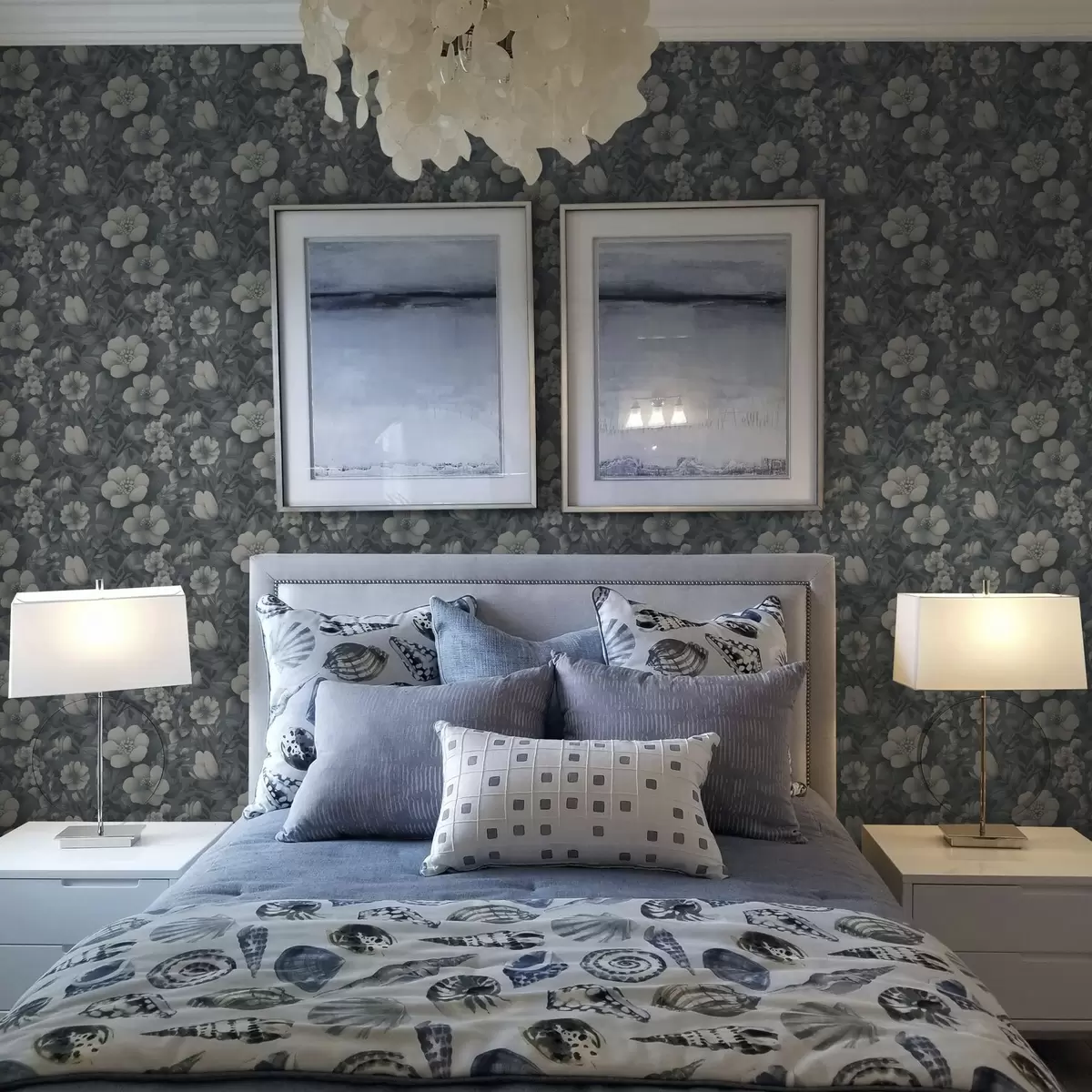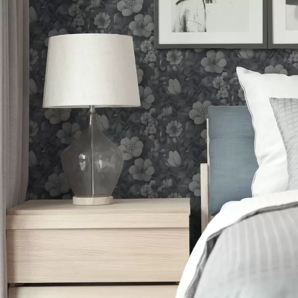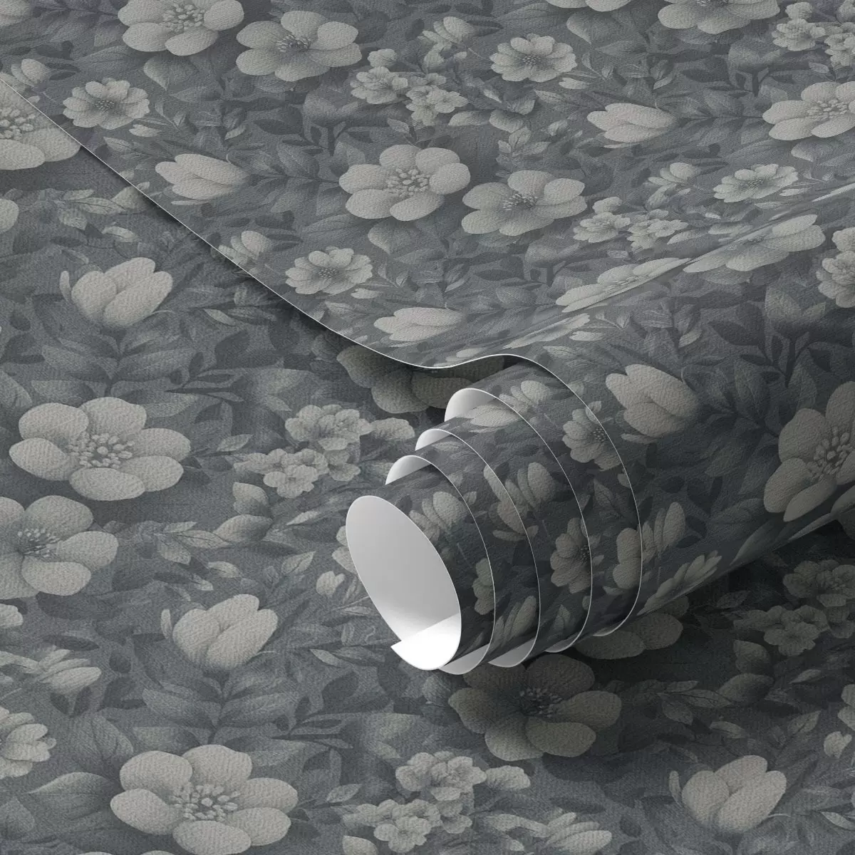 Tapet Model albastru închis cu flori albe voluminoase Nr. a00282
