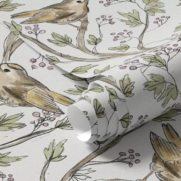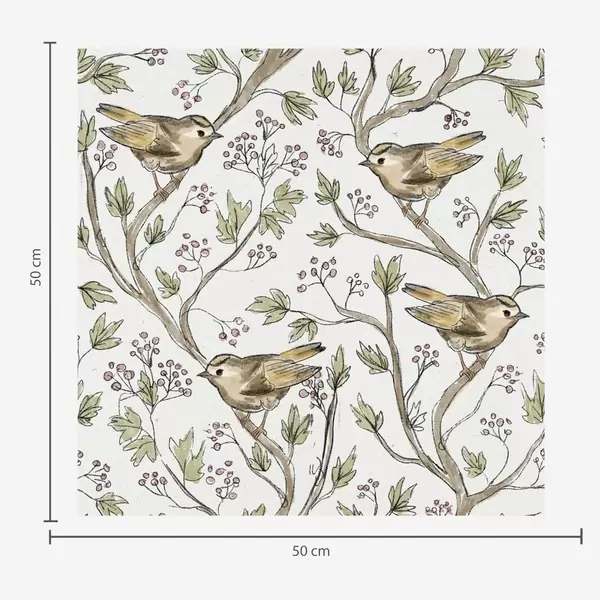 Tapet Păsări pe ramuri cu frunze și fructe de pădure pe un fundal alb Nr. a00283