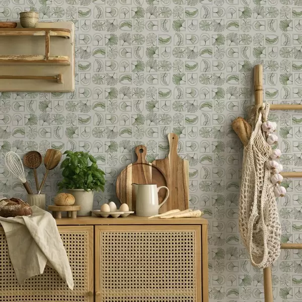 Tapet Model grafic cu frunze verzi în pătrate Nr. a00287