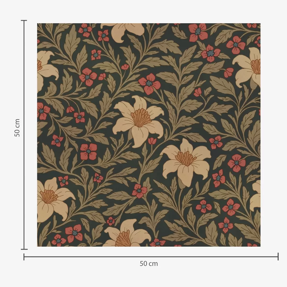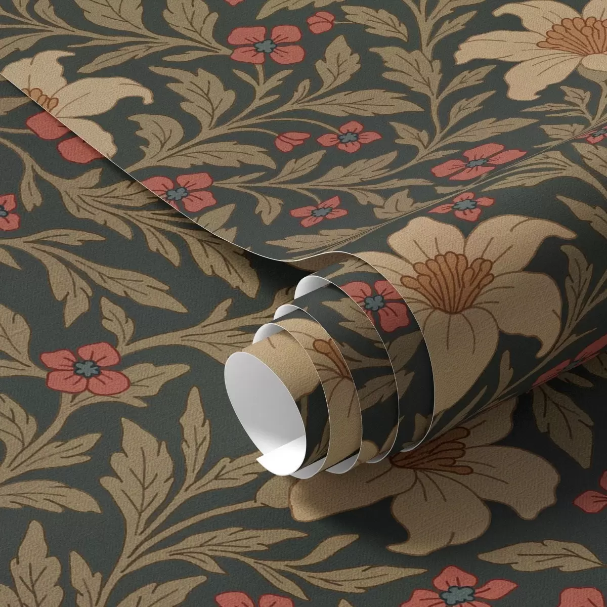 Wallpaper Fundal închis cu flori galbene și roșii în stil Art Nouveau a00293