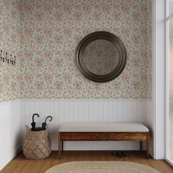 Tapet Margarete, bujori, crini și frunze în culori delicate Nr. a00299