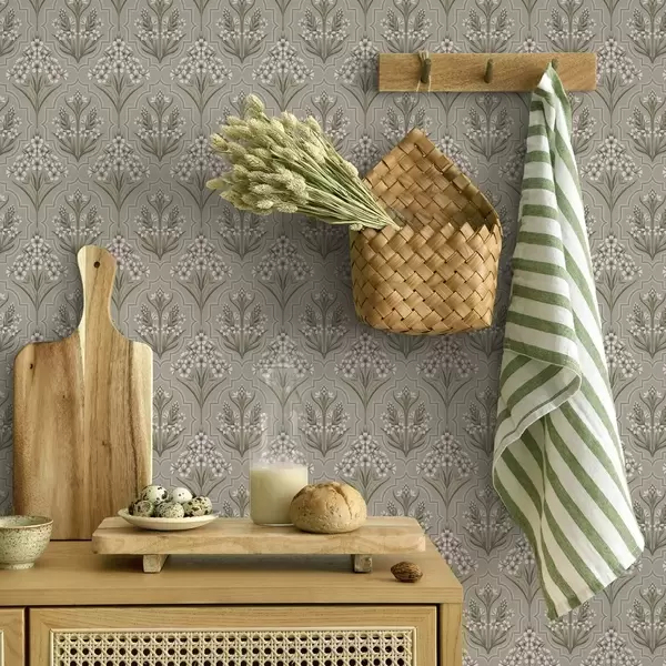 Tapet Model simetric cu flori albe pe un fundal gri Nr. a00302