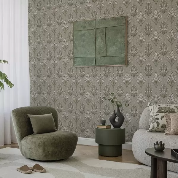 Tapet Model simetric cu flori albe pe un fundal gri Nr. a00302