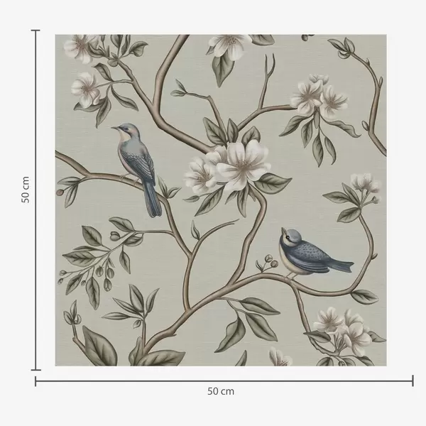 Tapet Ramuri cu păsări și flori albe pe un fundal delicat Nr. a00303