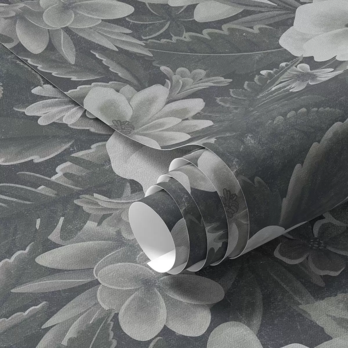 Tapet Model floral gri și alb cu efect retro Nr. a00307