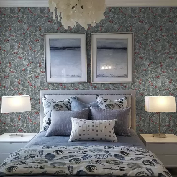 Tapet Frunze albastre cu crenguțe de fructe de pădure roșii Nr. a00309