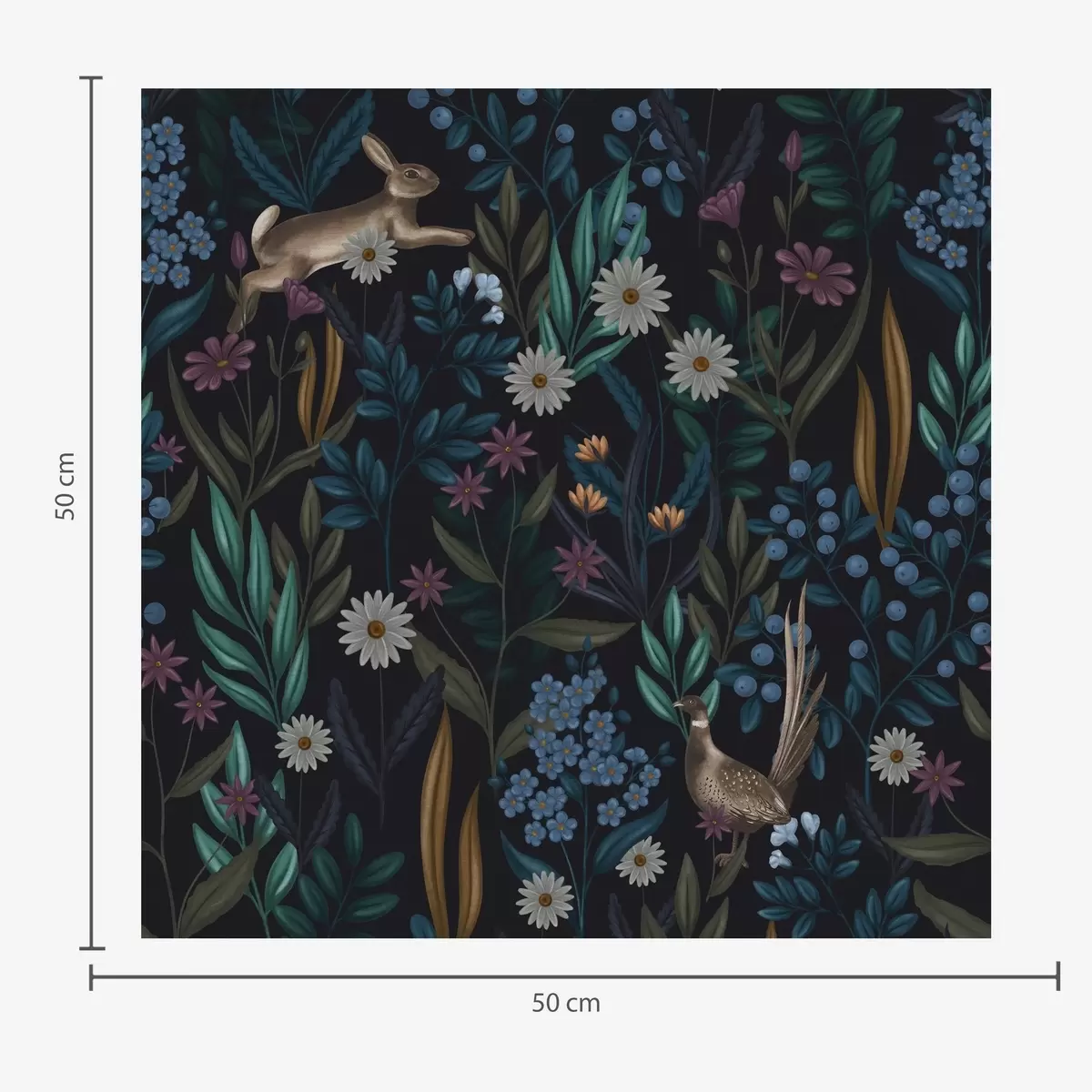 Tapet Pădure întunecată cu flori, iepure și o pasăre Nr. a00310