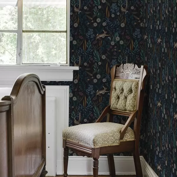 Tapet Pădure întunecată cu flori, iepure și o pasăre Nr. a00310