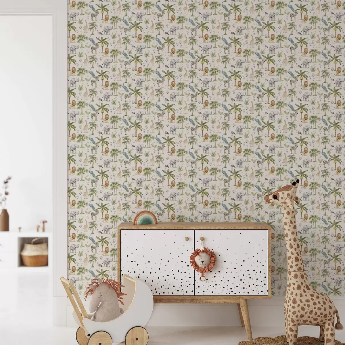 Tapet Animale africane printre palmieri și plante exotice Nr. a00321