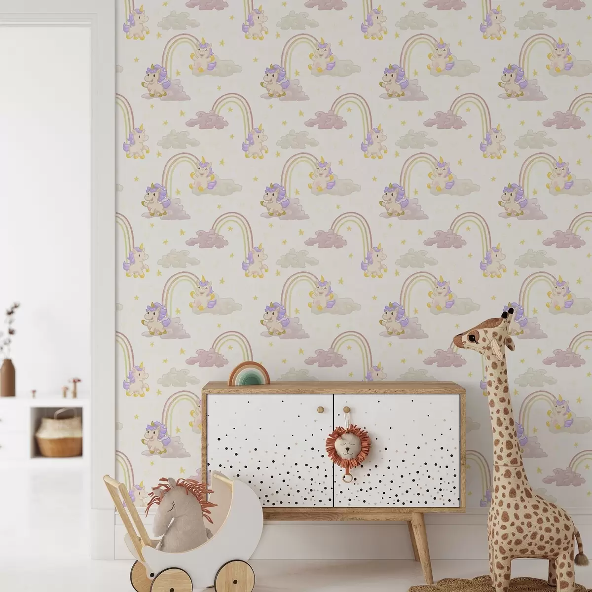 Tapet Unicorn drăguț cu curcubee și stele Nr. a00339