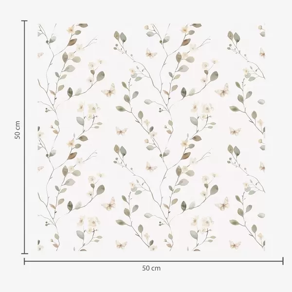 Tapet Ramuri subțiri cu flori și fluturi pe fundal alb Nr. a00342