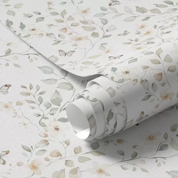 Wallpaper Ramuri ușoare cu frunze și flori în repetiție mică a00343