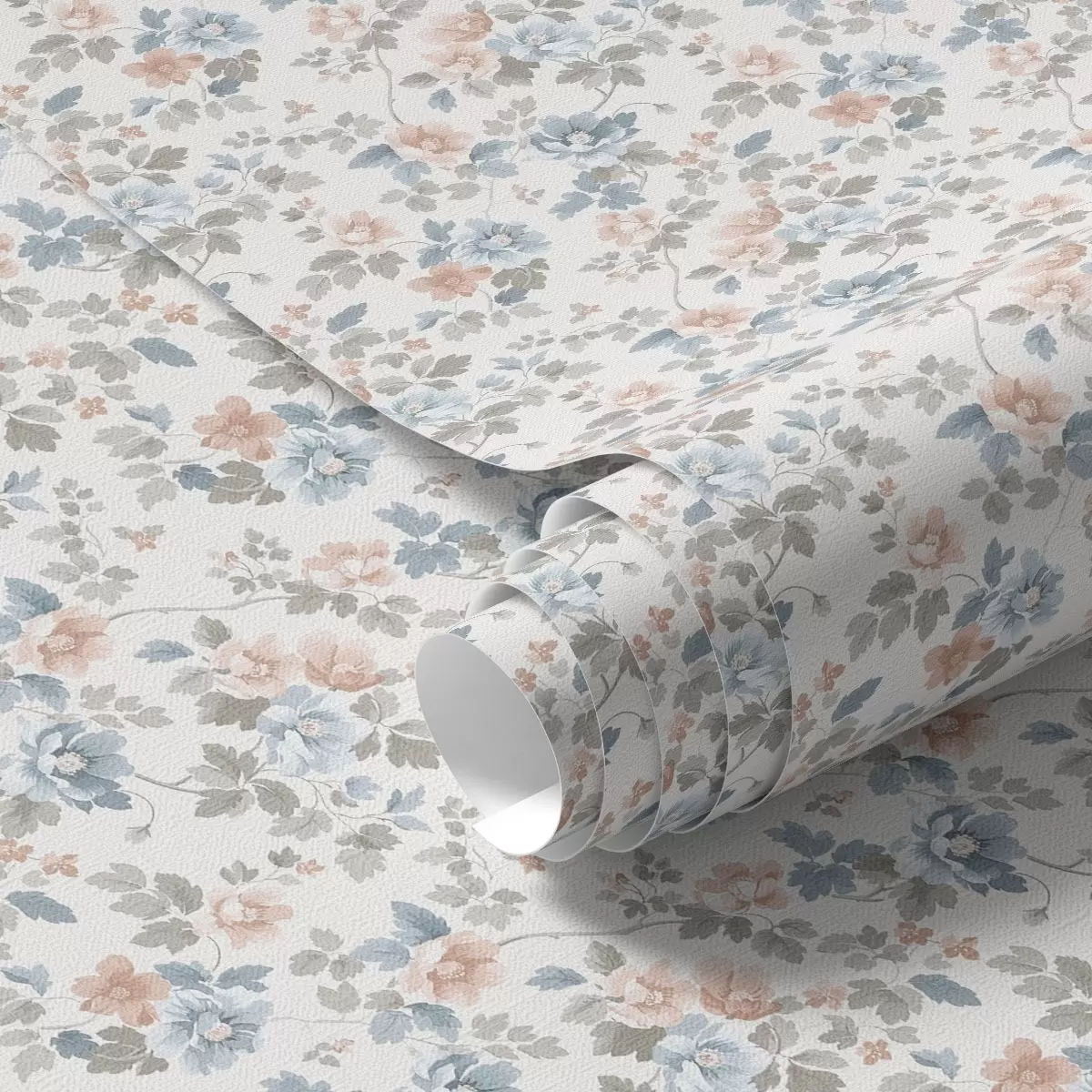 Tapet Ornament floral mic în tonuri de albastru și coral Nr. a00347