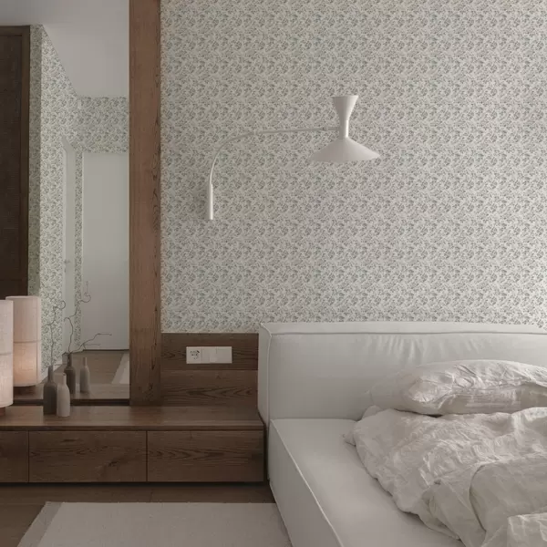 Tapet Ornament floral mic în tonuri de albastru și coral Nr. a00347