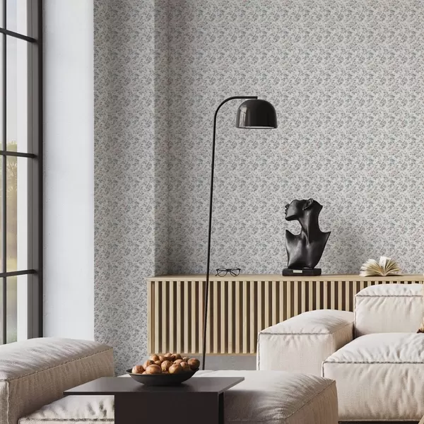 Tapet Ornament floral mic în tonuri de albastru și coral Nr. a00347