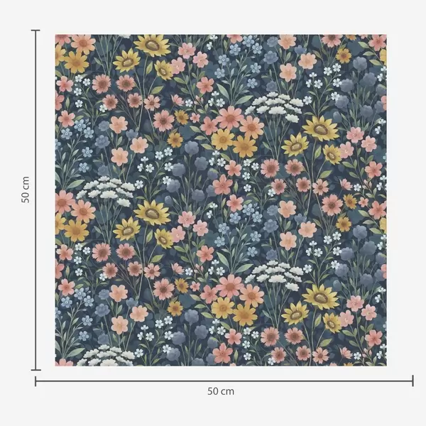 Tapet Colorat acuarelă flori de pajiște pe albastru marin Nr. a00381