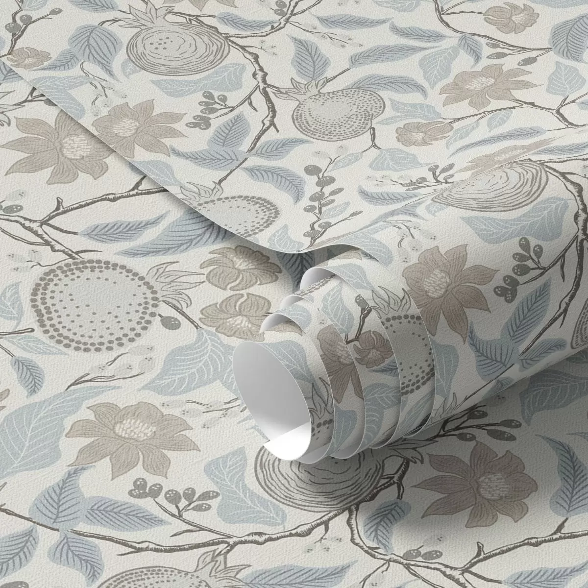 Tapet Rodie atenuată și ramuri de flori în stil vintage Nr. a00383
