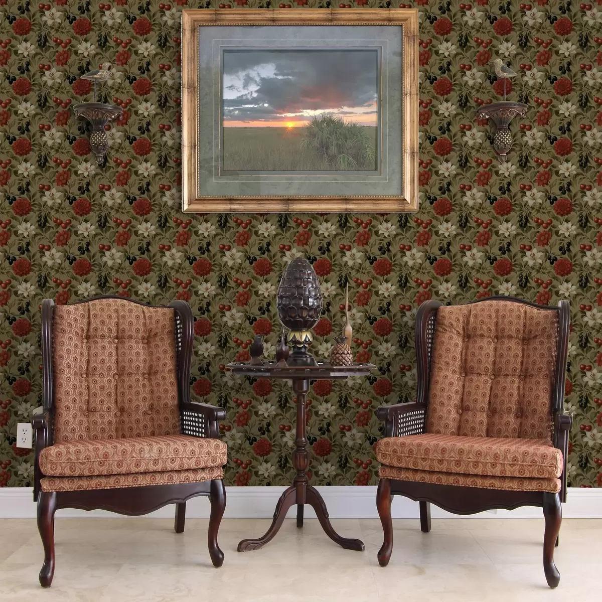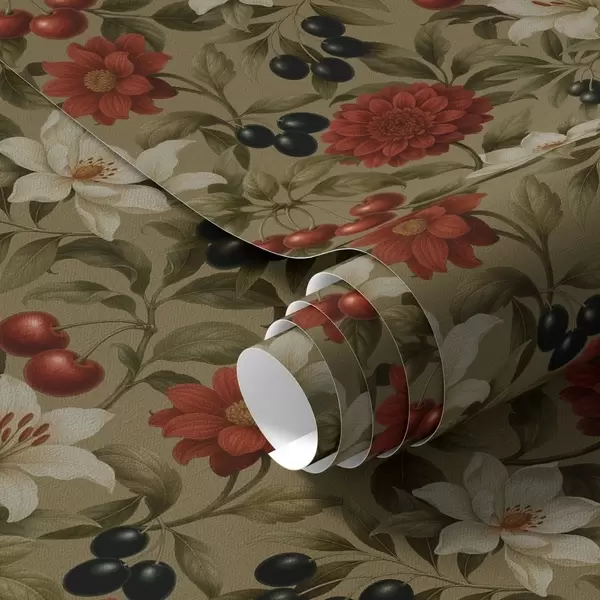 Tapet Cireșe, flori și măsline negre Nr. a00384