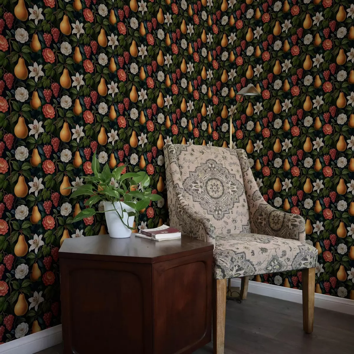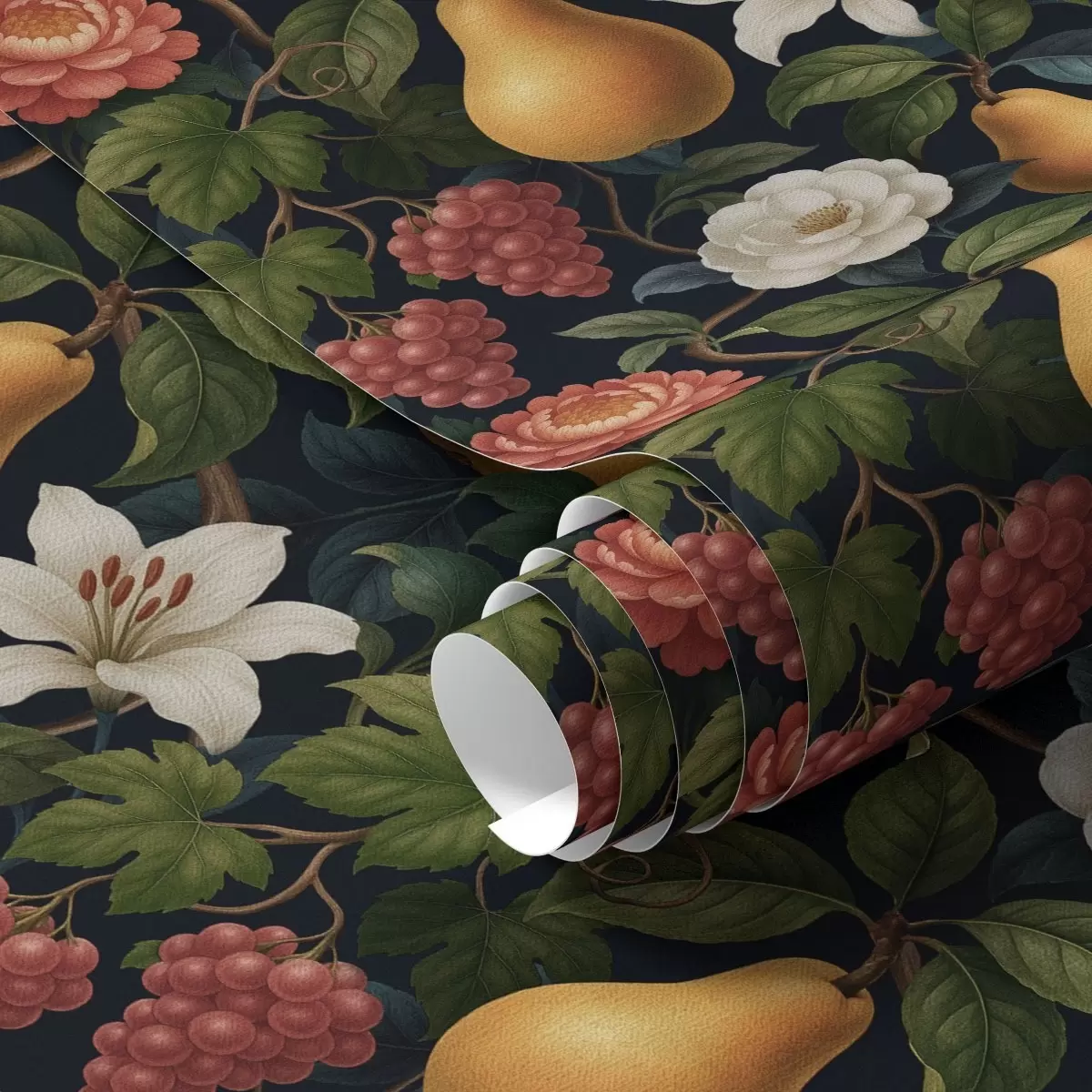 Tapet Fructe și flori baroce pe un fundal întunecat dramatic Nr. a00387