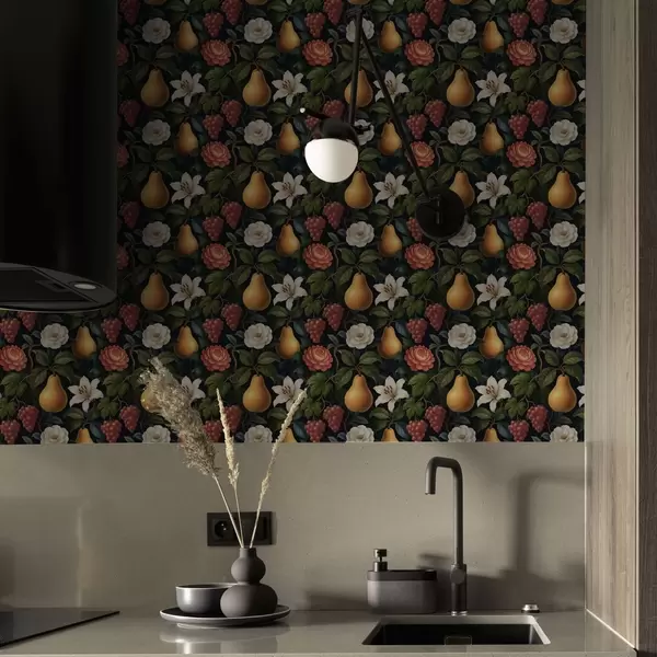 Tapet Fructe și flori baroce pe un fundal întunecat dramatic Nr. a00387