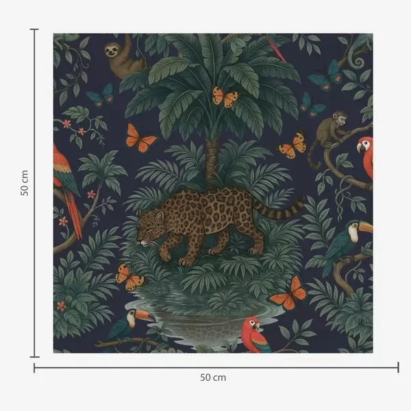 Tapet Jungla tropicală cu leopard, leopard, papagali și fluturi Nr. a00388