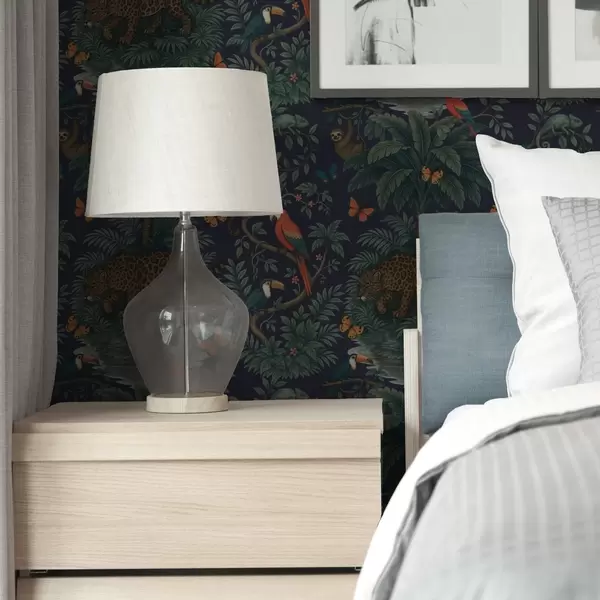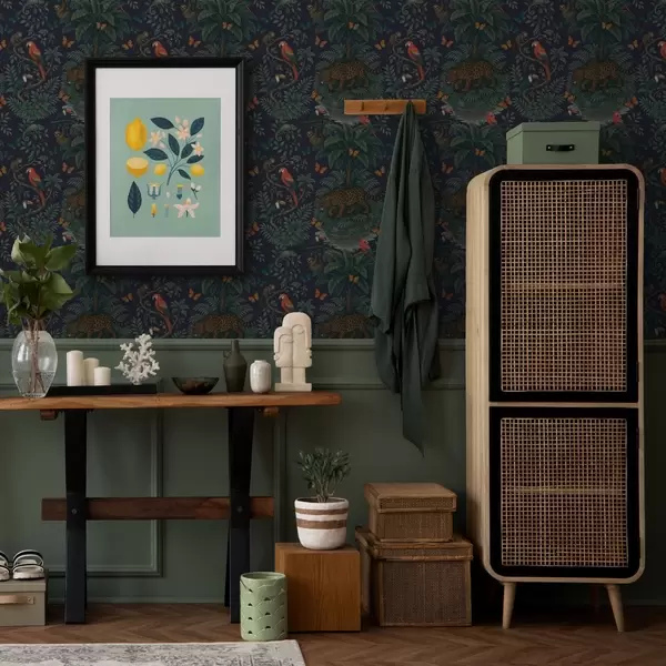 Tapet Jungla tropicală cu leopard, leopard, papagali și fluturi Nr. a00388
