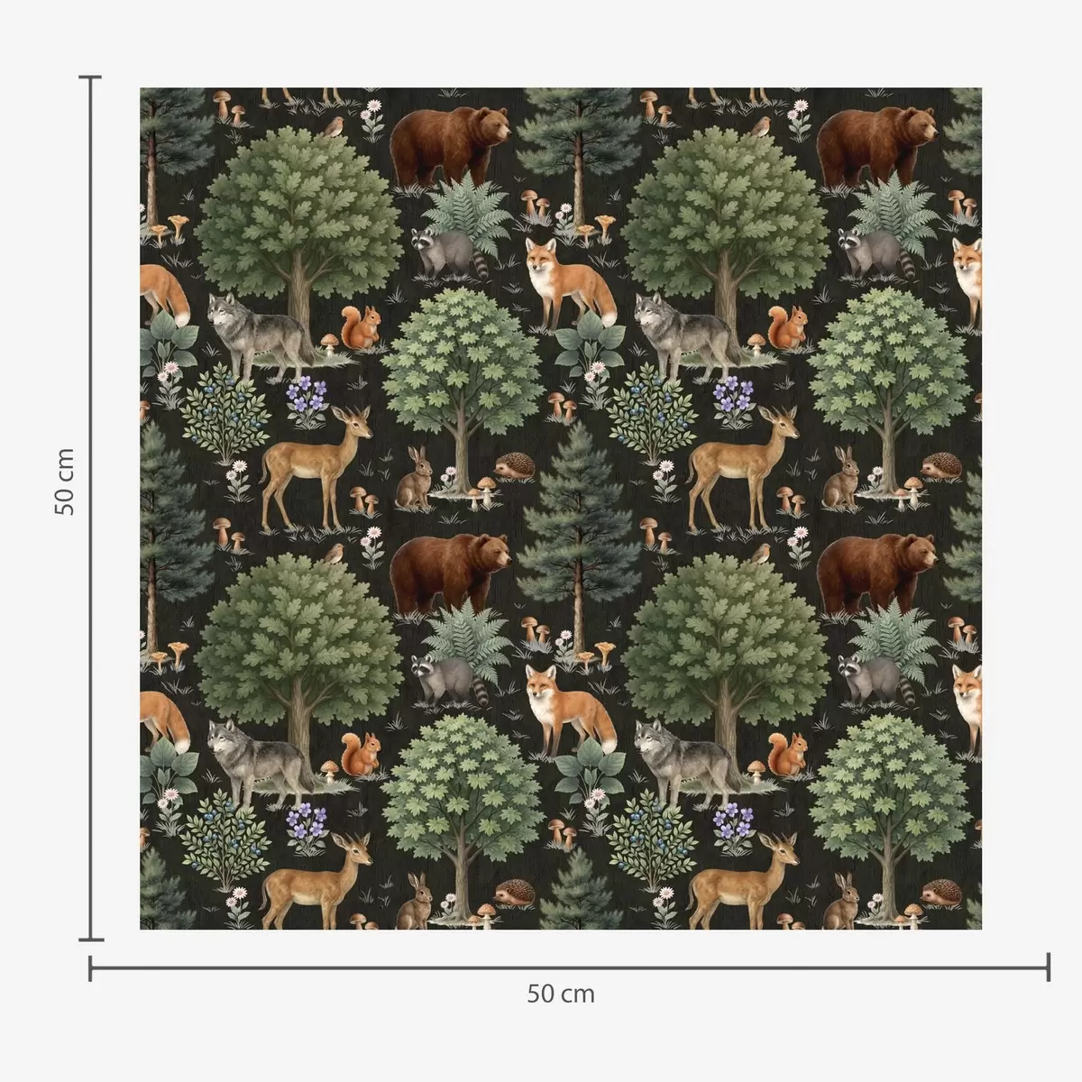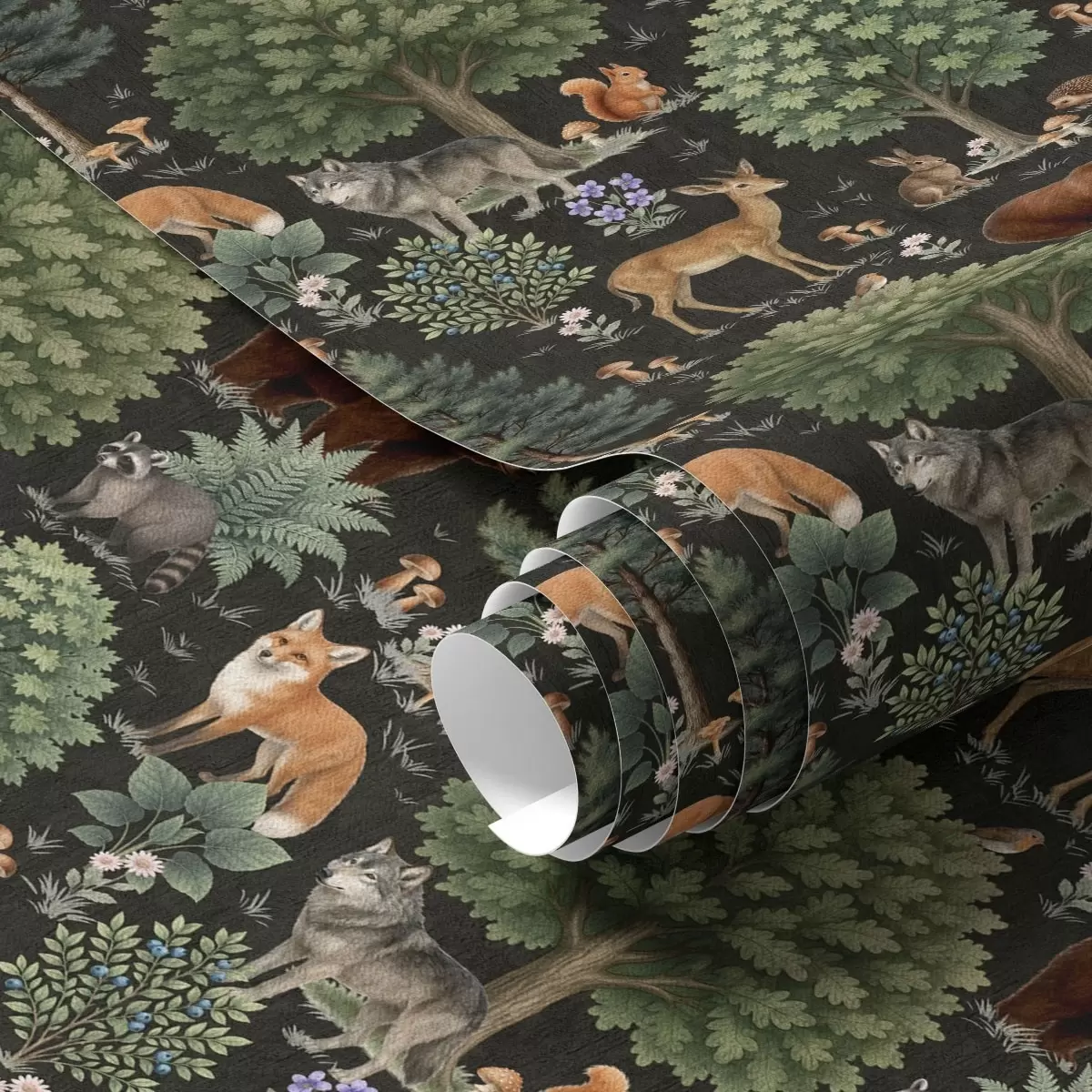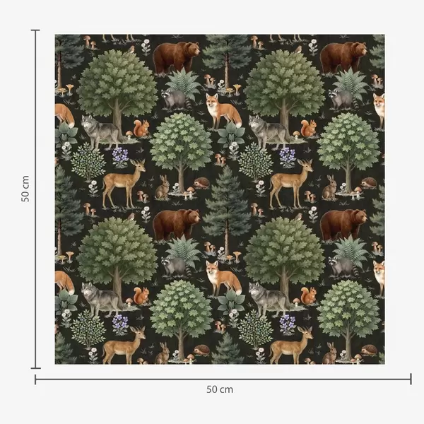 Tapet Acuarelă animale de pădure cu copaci și ciuperci Nr. a00391