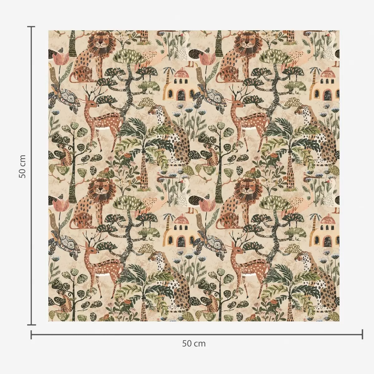 Tapet Animale de safari și frunze de savană în tonuri calde de pământ Nr. a00392