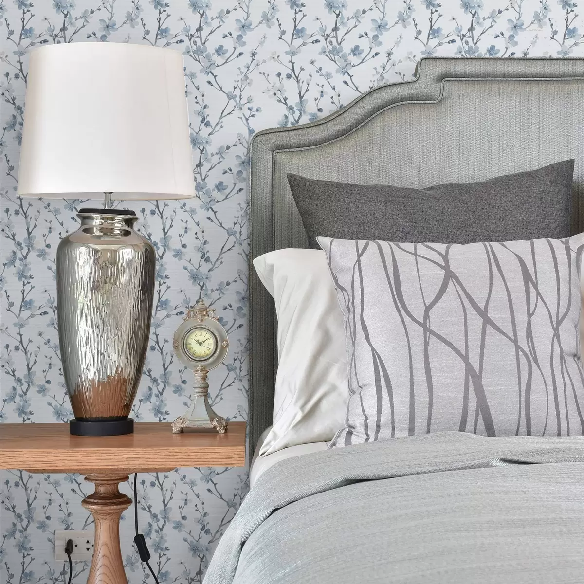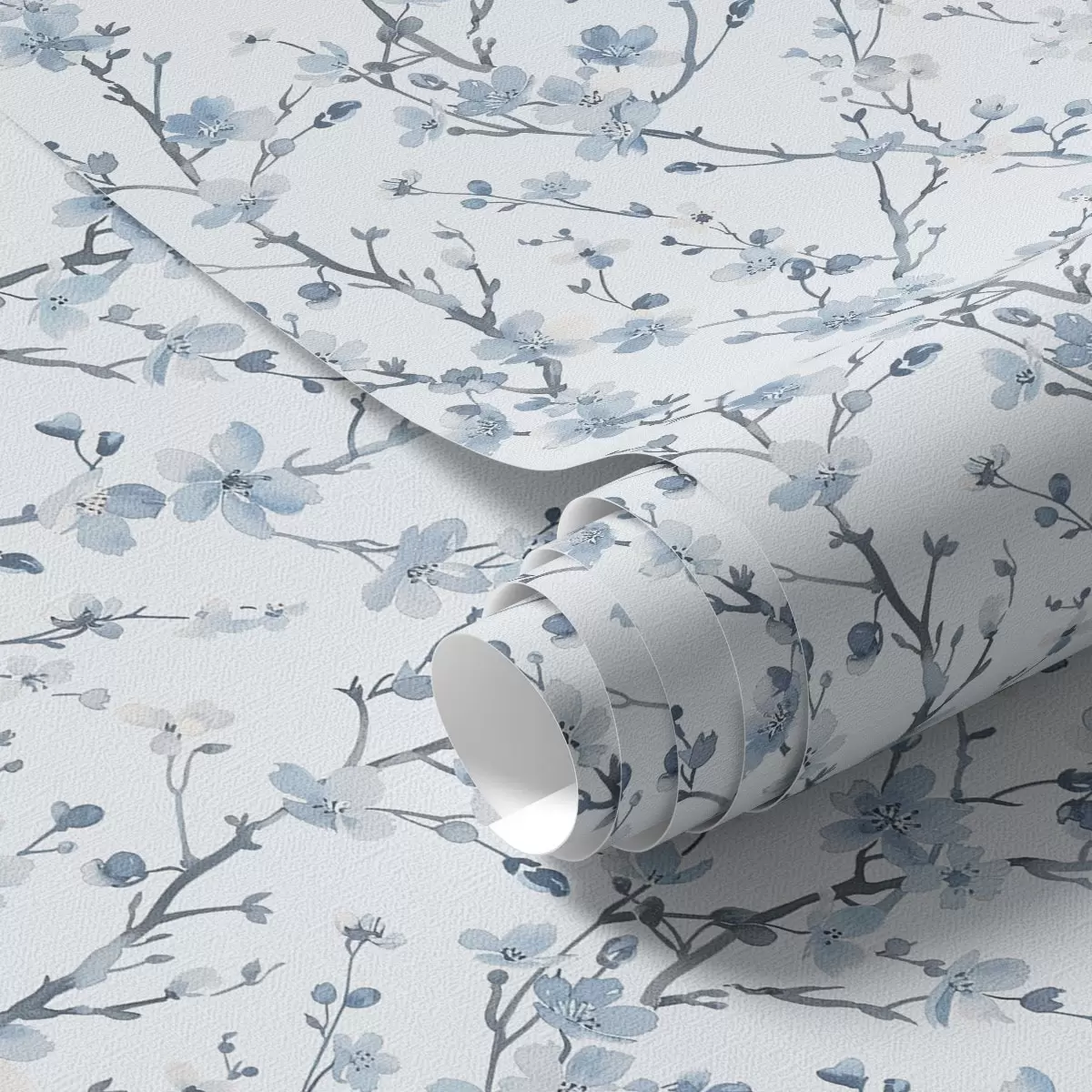 Tapet Flori de cireș albastru pe un fundal alb cu contrast moale Nr. a00399