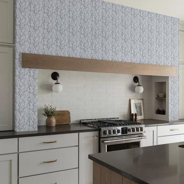 Tapet Flori de cireș albastru pe un fundal alb cu contrast moale Nr. a00399